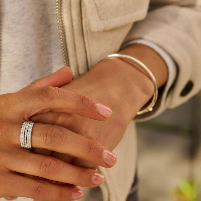 De 925 zilveren Elysa Bangle armband heeft een strak en tijdloos ontwerp dat elke look een elegante flair geeft. Het eenvoudige, maar verfijnde design maakt het de perfecte keuze voor dagelijks gebruik of om je outfit af te maken voor een speciale gelegenheid. Draag hem solo voor een subtiele statement of combineer met andere armbanden voor een stijlvolle, gelaagde look
